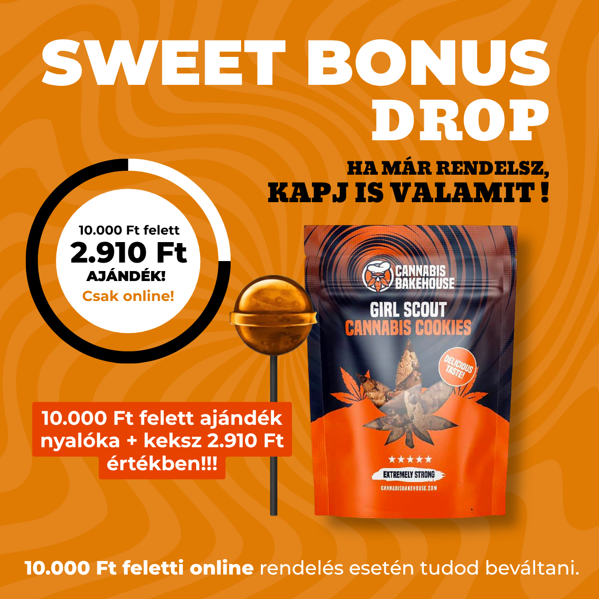 Online rendelésre szóló Sweet Bonus Drop kupon ajánlat a Hollyweed Cannabistro webáruházban.